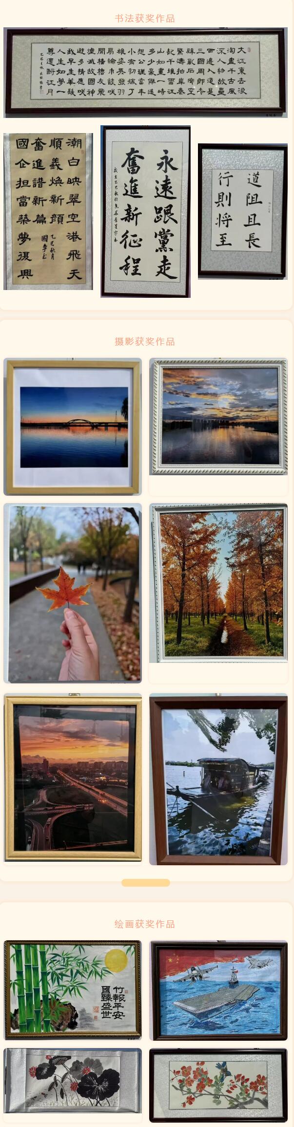 活動現(xiàn)場布置井然有序,50余幅攝影、繪畫、書法作品集中展示,題材豐富、形式多樣。參展作品緊扣“賀華誕、繪盛世”主題,聚焦新時(shí)代發(fā)展成就,展現(xiàn)順義建投責(zé)任擔(dān)當(dāng),講述“青鋒英才奮斗故事”,兼具思想性與藝術(shù)性,充分展現(xiàn)了順義建投干部職工積極向上的精神風(fēng)貌。展覽活動現(xiàn)場,參展人員認(rèn)真觀展,依據(jù)評選規(guī)則進(jìn)行投票,最終評選出一等獎3名、二等獎5名、三等獎6名。公司領(lǐng)導(dǎo)為獲獎作者頒發(fā)榮譽(yù)證書,對其優(yōu)秀創(chuàng)作成果予以表彰。書法獲獎作品攝影獲獎作品