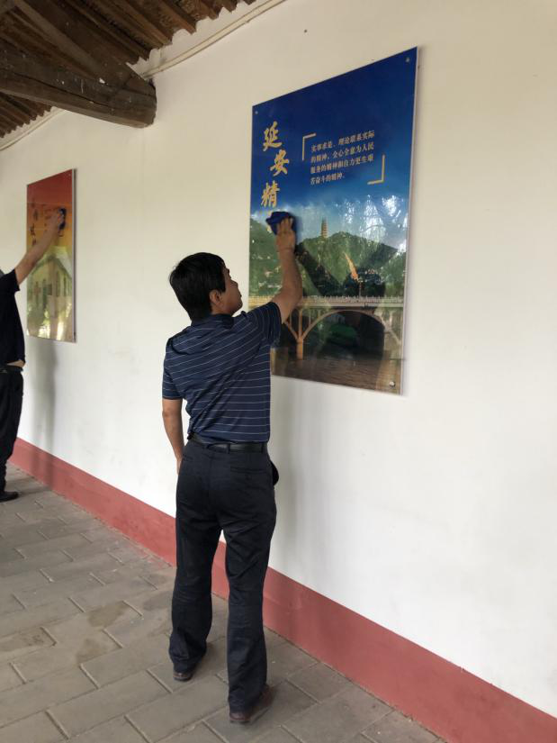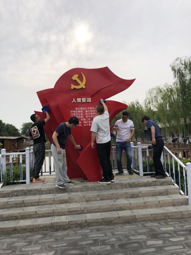 活動(dòng)中,黨員干部重點(diǎn)擦拭了黨史宣傳板、誓詞臺(tái)、路燈桿,清掃了湖邊棧道,撿拾了湖邊白色垃圾。在清掃過程中,同志們精神抖擻,不怕臟不拍累干得熱火朝天。經(jīng)過清掃的基地?zé)ㄈ灰恍?,環(huán)境明顯改善。