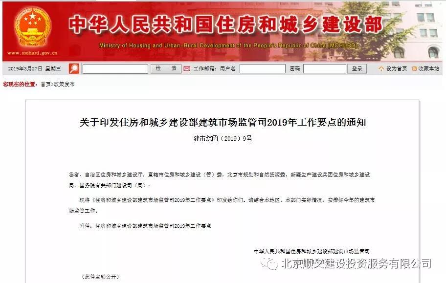關(guān)于印發(fā)住房和城鄉(xiāng)建設(shè)部建筑市場監(jiān)管司2019年工作要點(diǎn)的通知